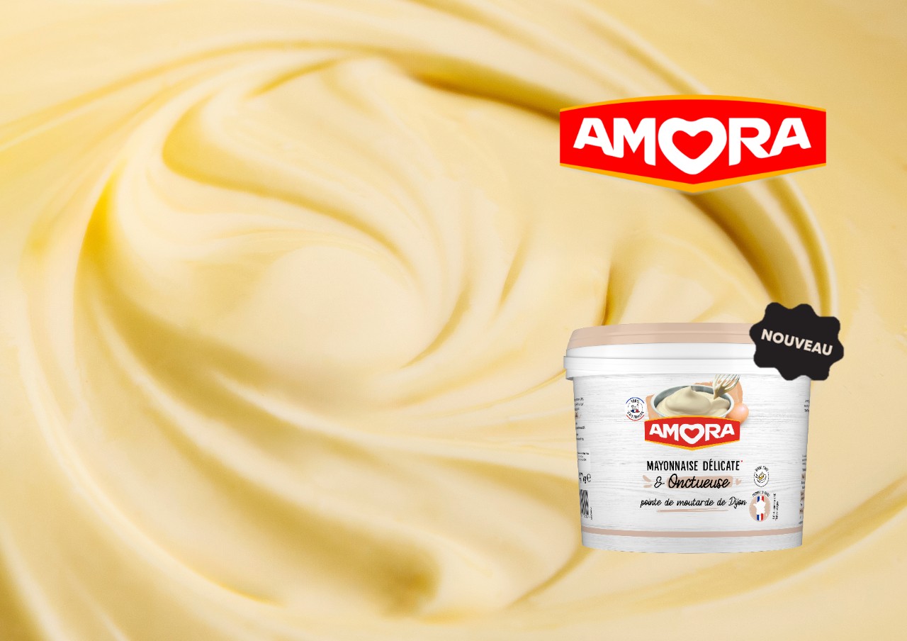 Je découvre !Découvrez La nouvelle Mayonnaise Délicate* & Onctueuse AMORA® : une texture onctueuse, un goût équilibré !